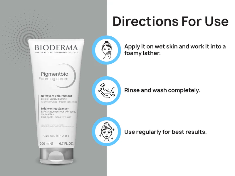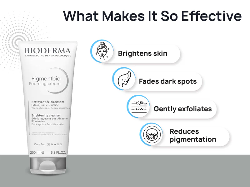Bioderma Pigmentbio Foaming Cream is a brightening and exfoliating cleanser designed to reduce dark spots and improve uneven skin tone.