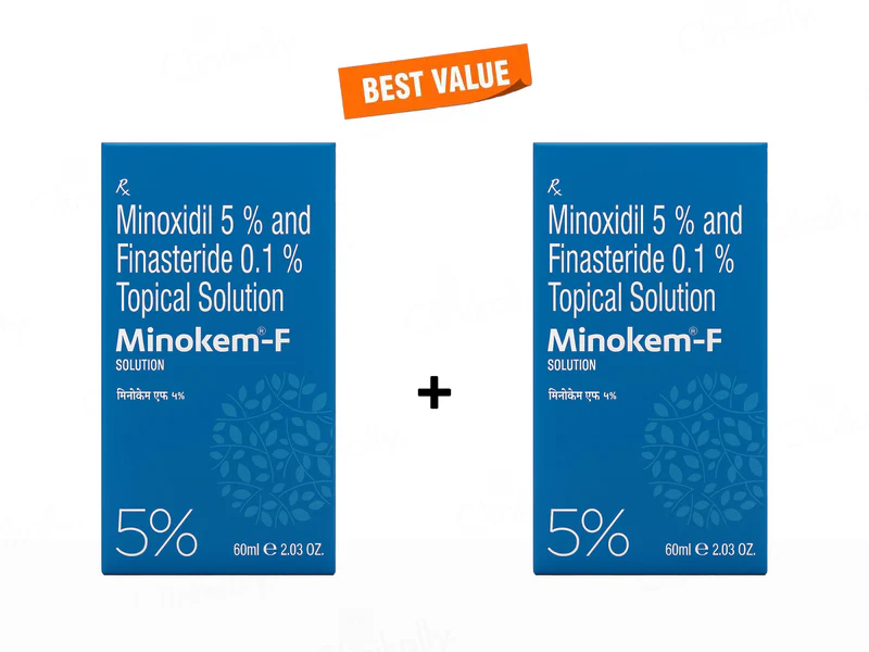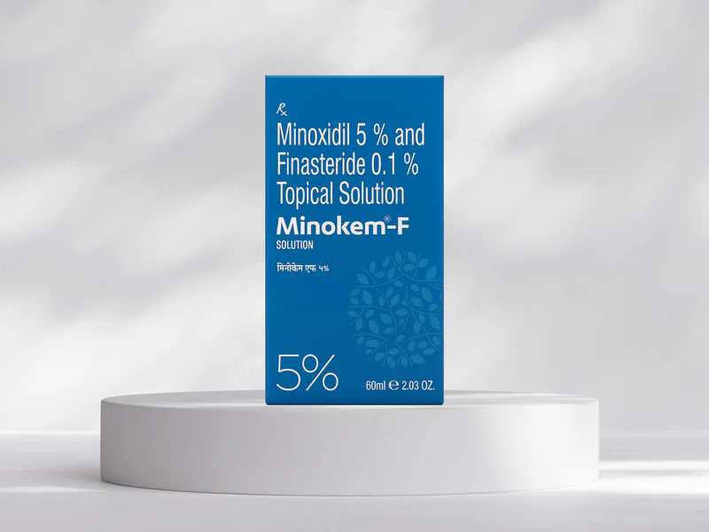 Minokem-F 5% Solution is a clinically proven formulation used to treat hair loss and male pattern baldness. Enriched with Minoxidil and Finasteride, it helps stimulate hair follicles, promote thicker regrowth, and slow down hair fall. This solution boosts scalp circulation, enhances follicular activity, and supports hormonal balance for effective and long-lasting hair restoration. With regular use, it helps achieve a fuller, healthier, and more youthful-looking scalp.