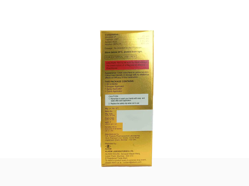 Minokem-N 2% Solution is a reliable treatment for hair loss and male pattern baldness. Enriched with Minoxidil, Azelaic Acid, and Tretinoin, it promotes hair regrowth by revitalizing weakened hair follicles. This easy-to-apply solution helps increase hair density and thickness, making it an effective choice for restoring fuller, healthier-looking hair and boosting confidence.